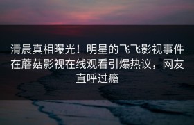 清晨真相曝光!明星的飞飞影视事件在蘑菇影视在线观看引爆热议,网友直呼过瘾