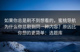 如果你总是刷不到想看的,蜜桃导航为什么你总刷到同一种内容?原因比你想的更简单:选题库