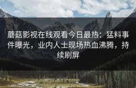 蘑菇影视在线观看今日最热:猛料事件曝光,业内人士现场热血沸腾,持续刷屏