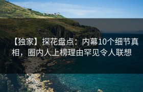 探花内幕十点揭秘——隐藏的细节引发无限联想 娱乐圈风云变幻,光鲜亮丽的背后,却藏匿着大量鲜为人知的秘...