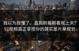 我以为我懂了,直到刷着刷着就上头?91视频真正拿捏你的其实是片单规划 大多数人把“刷着刷着就停不下来...