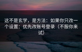 这不是玄学,是方法:如果你只改一个设置:优先改账号登录(不服你来试) 数字生活里,很多人把时间花在“...