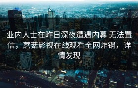 业内人士在昨日深夜遭遇内幕 无法置信,蘑菇影视在线观看全网炸锅,详情发现